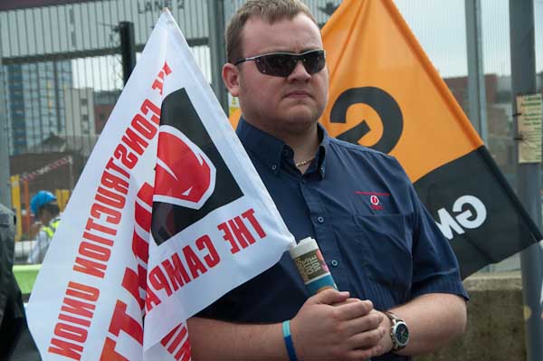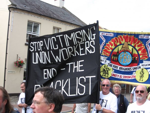 Steve Kelly (2nd from left) outside his Blacklisting court case with our very own Steve Ballard (far right)