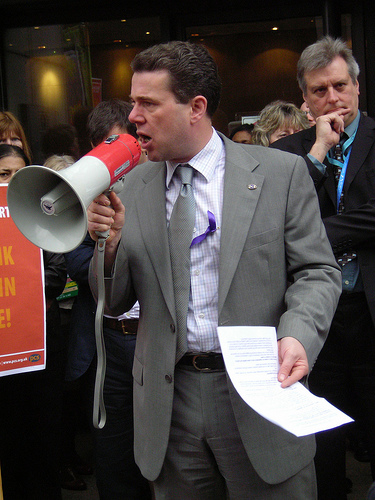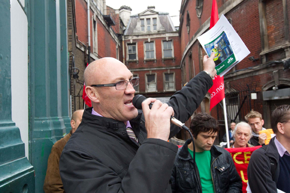 Steve Kelly speaking at one of the recent demos during the sparks dispute
