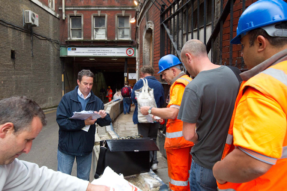 Leafleting at a site in London during the ongoing sparks dispute